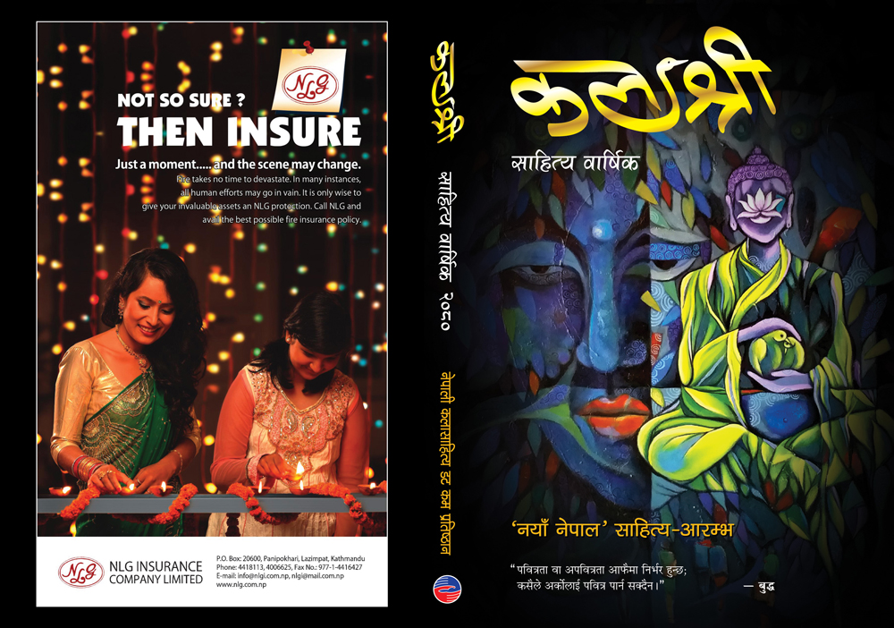सत्यमा जीवनको सुगन्धलाई कैद गर्न नसके पनि यथार्थतः जीवनको रङग उतार्ने इन्द्रेणी शब्दलाई सलाम! यो सृष्टिमा जति अँध्यारो छाए पनि उज्यालो सम्भावनालाई साक्षी राखेर अँध्यारोमा शब्दको आतसबाजी उतार्ने स्रष्टालाई सलाम! यिनै उज्यालो सम्भावनायुक्त सम्यक् कर्मको जीवन्त साक्षी बन्न पुगेको छ— कलाश्री साहित्य वार्षिक एवम् यो ई पत्रिका www.nepalikalasahitya.com / www.nepaliartnliterature.com आस्था र विश्वासको जीवन्त स्मारक बन्ने छ भन्ने गर्विलो विश्वास लिएका छौँ। यसमा सत्कर्मयात्राका जीवन्त सारथि नेपाली कलासाहित्य डट कम प्रतिष्ठानलाई एनएलजीको स्नेहिल साथ स्रष्टाजगतमा सदा अविष्मरणीय रहने छ।