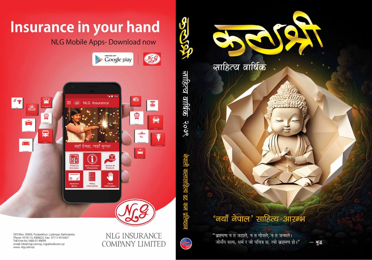 सत्यमा जीवनको सुगन्धलाई कैद गर्न नसके पनि यथार्थतः जीवनको रङग उतार्ने इन्द्रेणी शब्दलाई सलाम ! यो सृष्टिमा जति अँध्यारो छाए पनि उज्यालो सम्भावनालाई साक्षी राखेर अँध्यारोमा शब्दको आतसबाजी उतार्ने स्रष्टालाई सलाम ! यिनै उज्यालो सम्भावनायुक्त सम्यक् कर्मको जीवन्त साक्षी बन्न पुगेको छ— कलाश्री साहित्य वार्षिक एवम् यो ई पत्रिका www.nepalikalasahitya.com / www.nepaliartnliterature.com आस्था र विश्वासको जीवन्त स्मारक बन्ने छ भन्ने गर्विलो विश्वास लिएका छौँ । यसमा सत्कर्मयात्राका जीवन्त सारथि नेपाली कलासाहित्य डट कम प्रतिष्ठानलाई एनएलजीको स्नेहिल साथ स्रष्टाजगतमा सदा अविष्मरणीय रहने छ ।